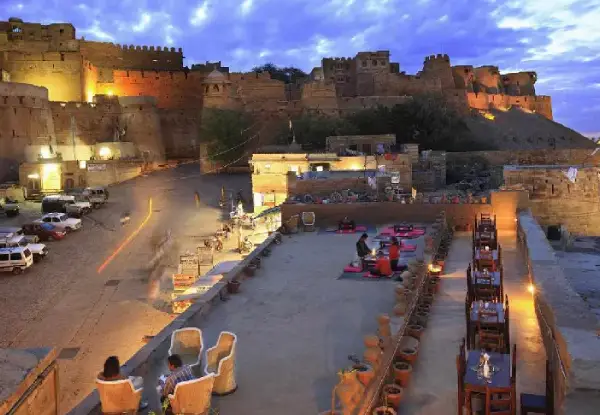Take your early morning flight and arrive in Jaisalmer. Check into Suryagarh Palace, one of the royal heritage resorts in Jaisalmer. A Rajasthani Aarti, a garland, and a welcome drink will be given to you. After touring the resort's stunning architecture, which includes expansive courtyards, gardens, and a gallery, head to your suite. After touring the rooms, settle in and take advantage of the hot water spa. Savor exquisite meals at a magnificent, elegant eating establishment while listening to folk music. As you get ready for the next day, get back to your hotel and rest.